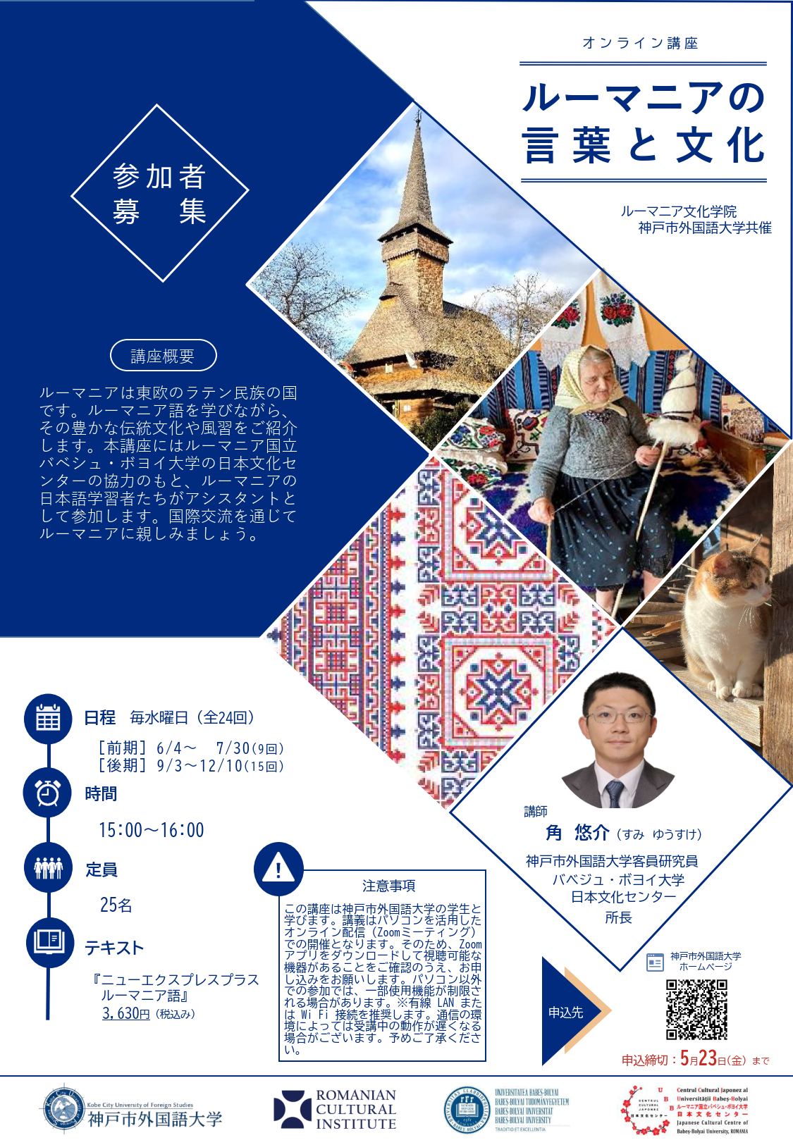 Institutul Cultural Român și Kobe City Uiversity of Foreign Studies vor organiza cursuri de limba română online pentru japonezi în colaborare cu Centrul Cultural Japonez al Universității Babeș-Bolyai. Elevii, care învață limba japonezpă la CCJUBB, vor participa ca asistenți.