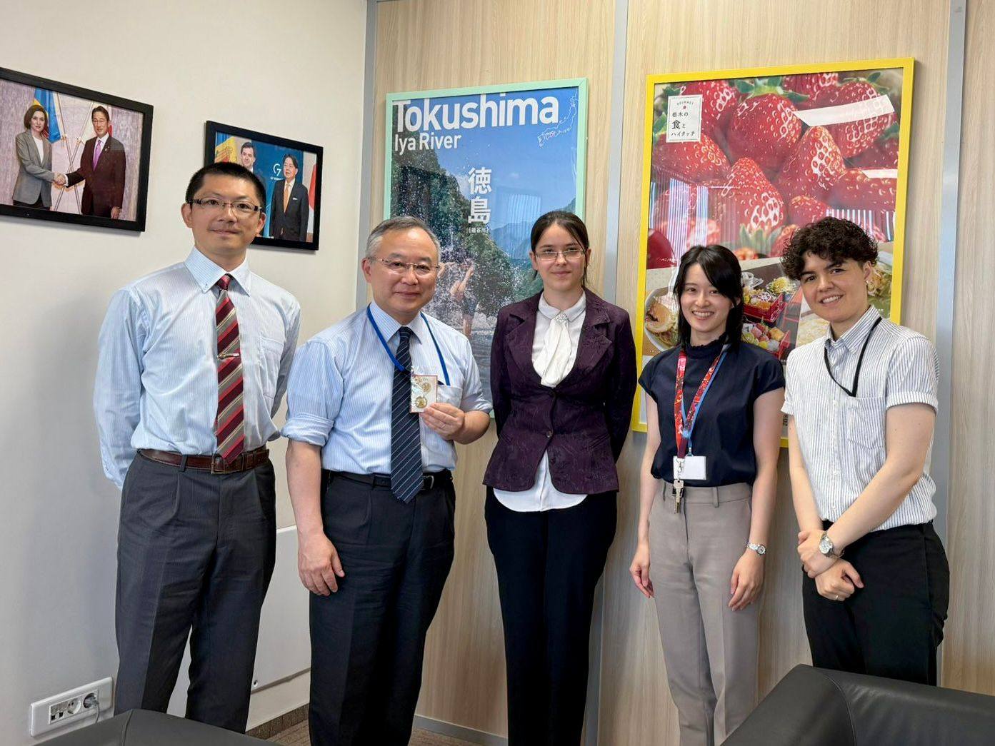 2025年7月16日、バベシュ・ボヨイ大学日本文化センター角所長はモルドバ共和国の日本大使館を訪問し、山田洋一郎大使と会談しました。5月17日に行われた「第5回ルーマニア語話者の声」に「私とルーマニア語」のテーマでご登壇いただいた山田大使に、バベシュ・ボヨイ大学からの参加証明書が手渡されました。会談にはバベシュ・ボヨイ大学出身である内藤淑乃氏のほか、柴崎パメラ氏が同席しました。